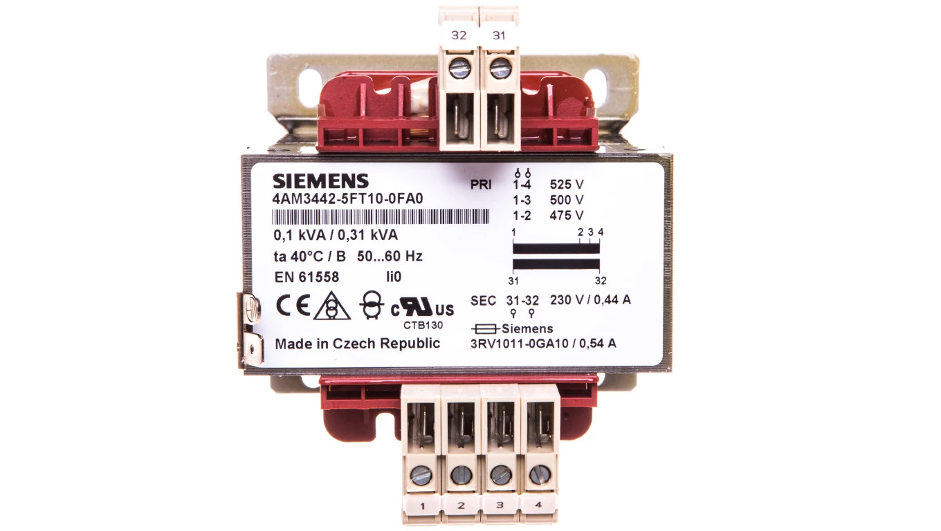 Transformator 1-fazowy 100VA 500/230V AC izolacyjny do obwodów pomocniczych 4AM3442-5FT10-0FA0