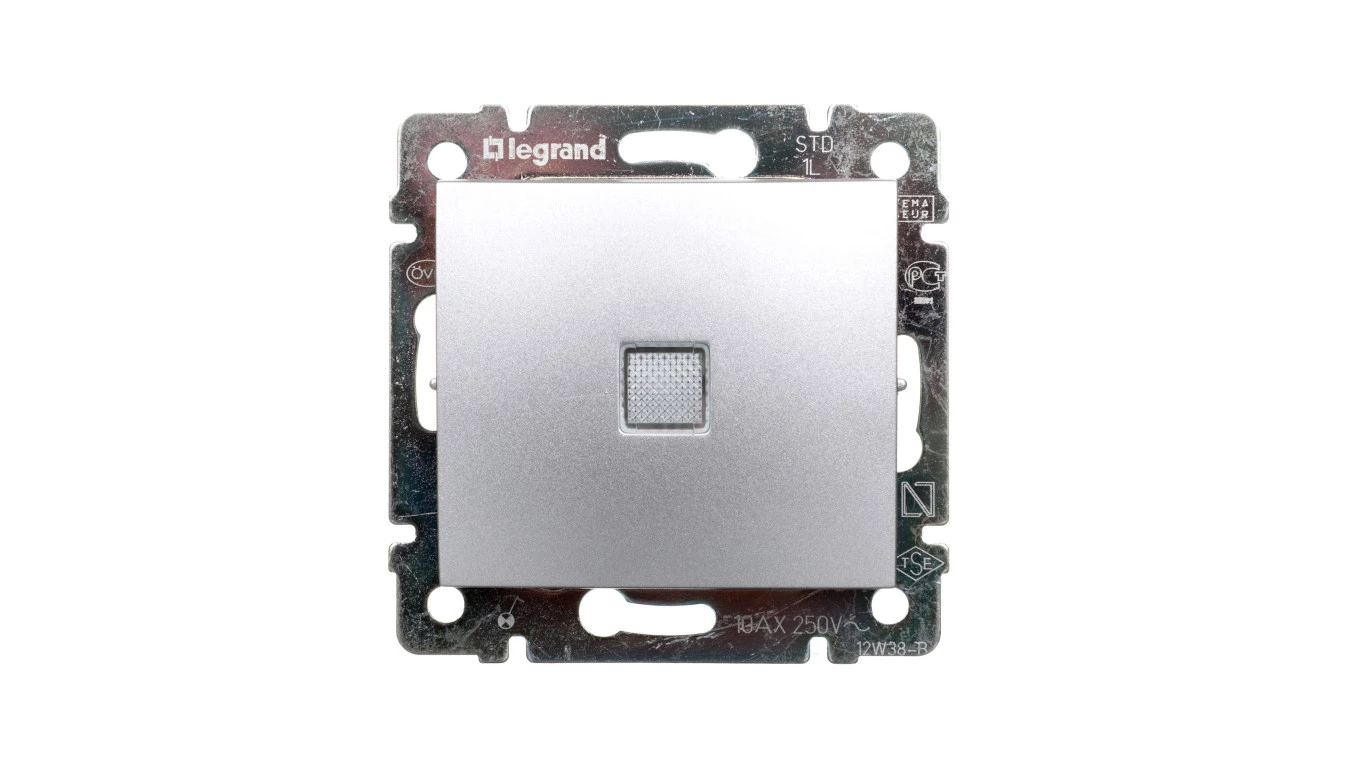 VALENA Łącznik jednobiegunowy ze wskaźnikiem przepływu prądu aluminium 770110