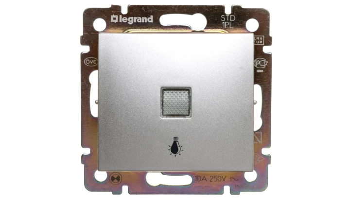 VALENA Przycisk jednobiegunowy z podświetleniem aluminium 770113 /10 szt./