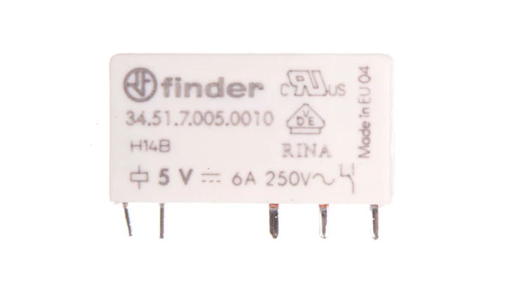 Wąski przekaźnik elektromagnetyczny 1P 6A 5V DC do płytki drukowanej 34.51.7.005.0010