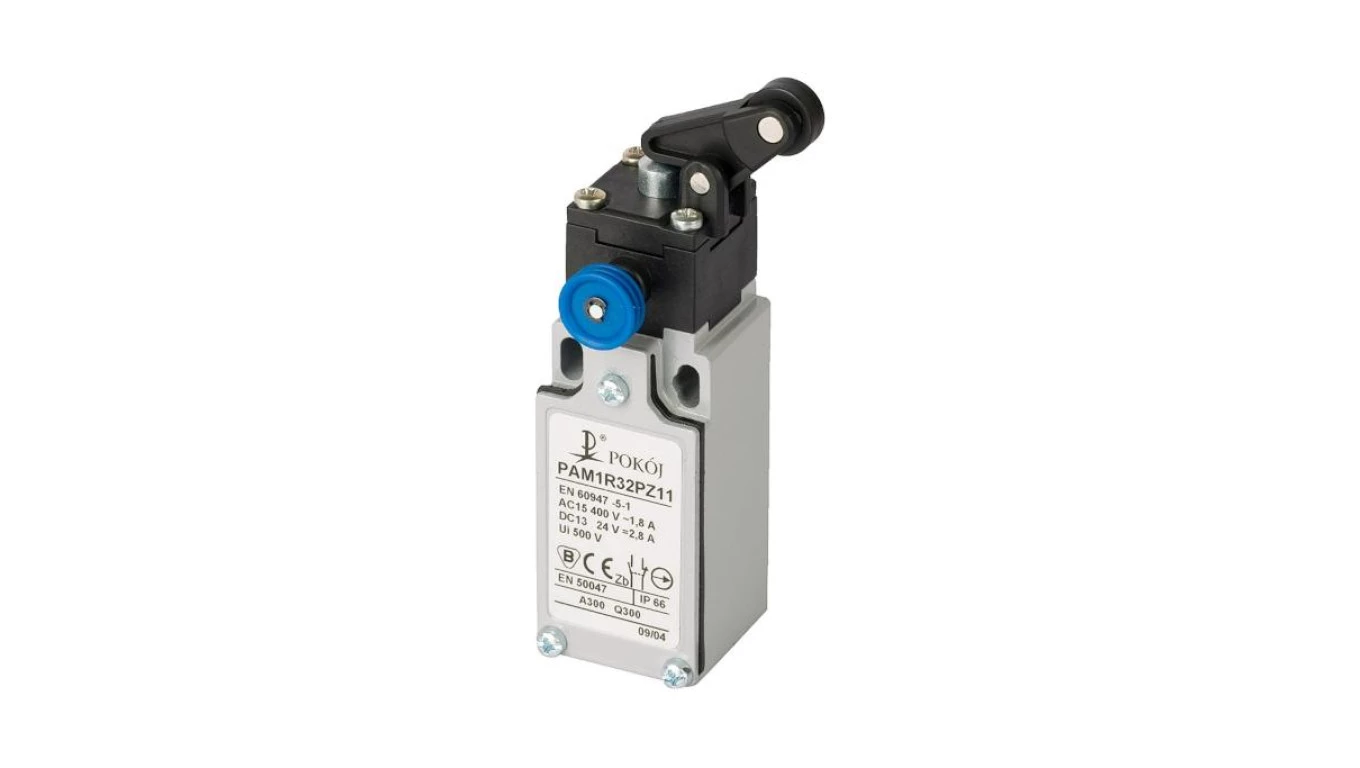 Wyłącznik krańcowy 1R 1Z wolnoprzełączający popychacz stalowy dźwignia pionowa z rolką Ø12,5 z resetem PAM1R32PX11 A37-4R42