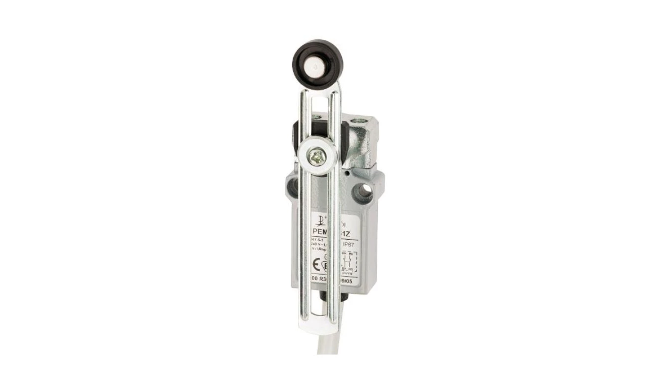 Wyłącznik krańcowy 1R 1Z wolnoprzełączający regulowana dźwignia z rolką z tworzywa Ø18 PEM2G51X A37-B95X