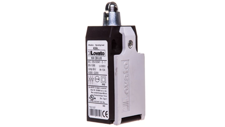 Wyłącznik krańcowy trzpień wciskany z rolką, rolka metalowa, obudowa z tworzywa, 3R zestyki wolnoprzełączające KBB2L03