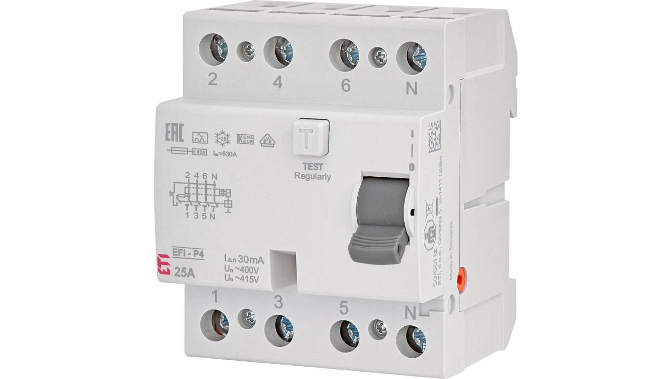 Wyłącznik różnicowoprądowy 4P 25A 0,03A typ A 6kA EFI6-P4 A 25/0.03 002061661