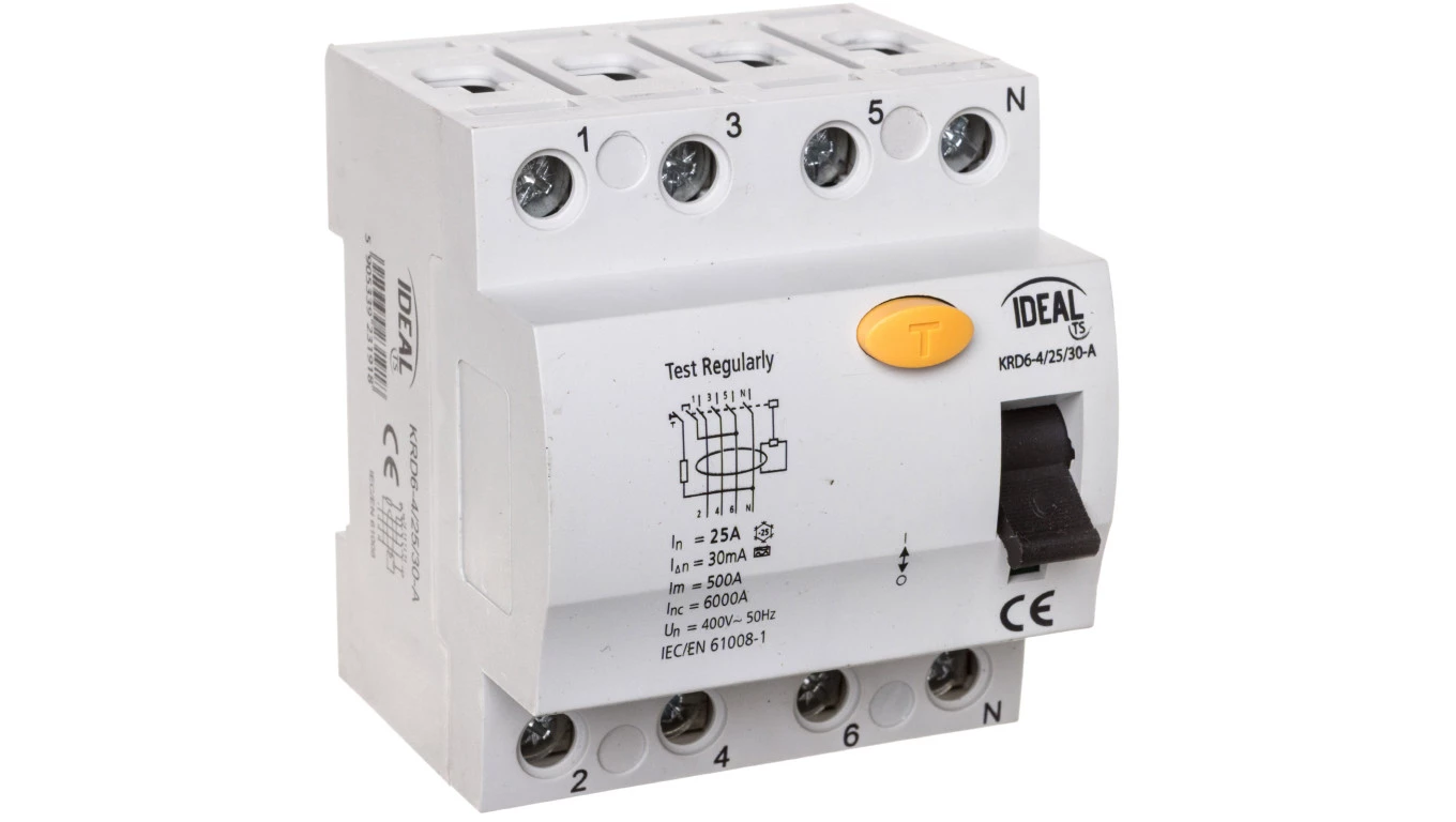 Wyłącznik różnicowoprądowy 4P 25A 0,03A typ A KRD6-4/25/30-A VDE 23191