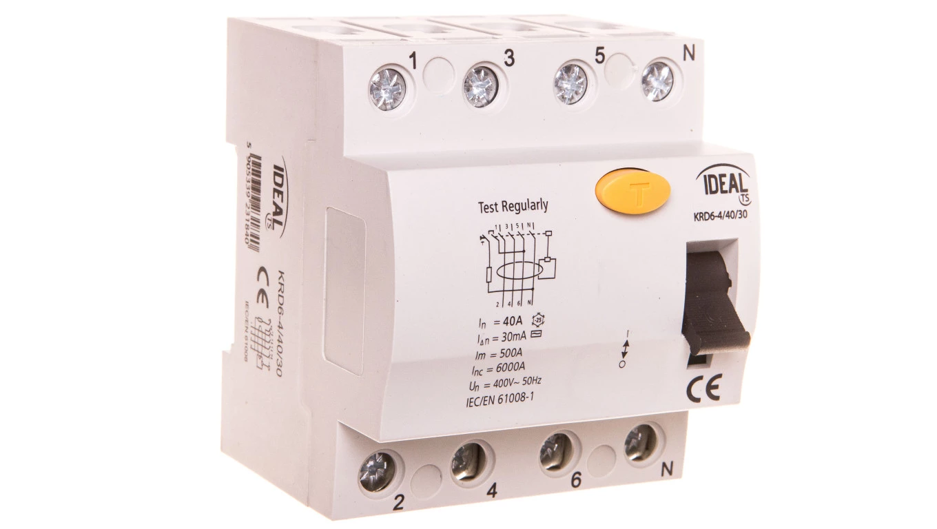 Wyłącznik różnicowoprądowy 4P 40A 0,03A typ AC KRD6-4/40/30 23184