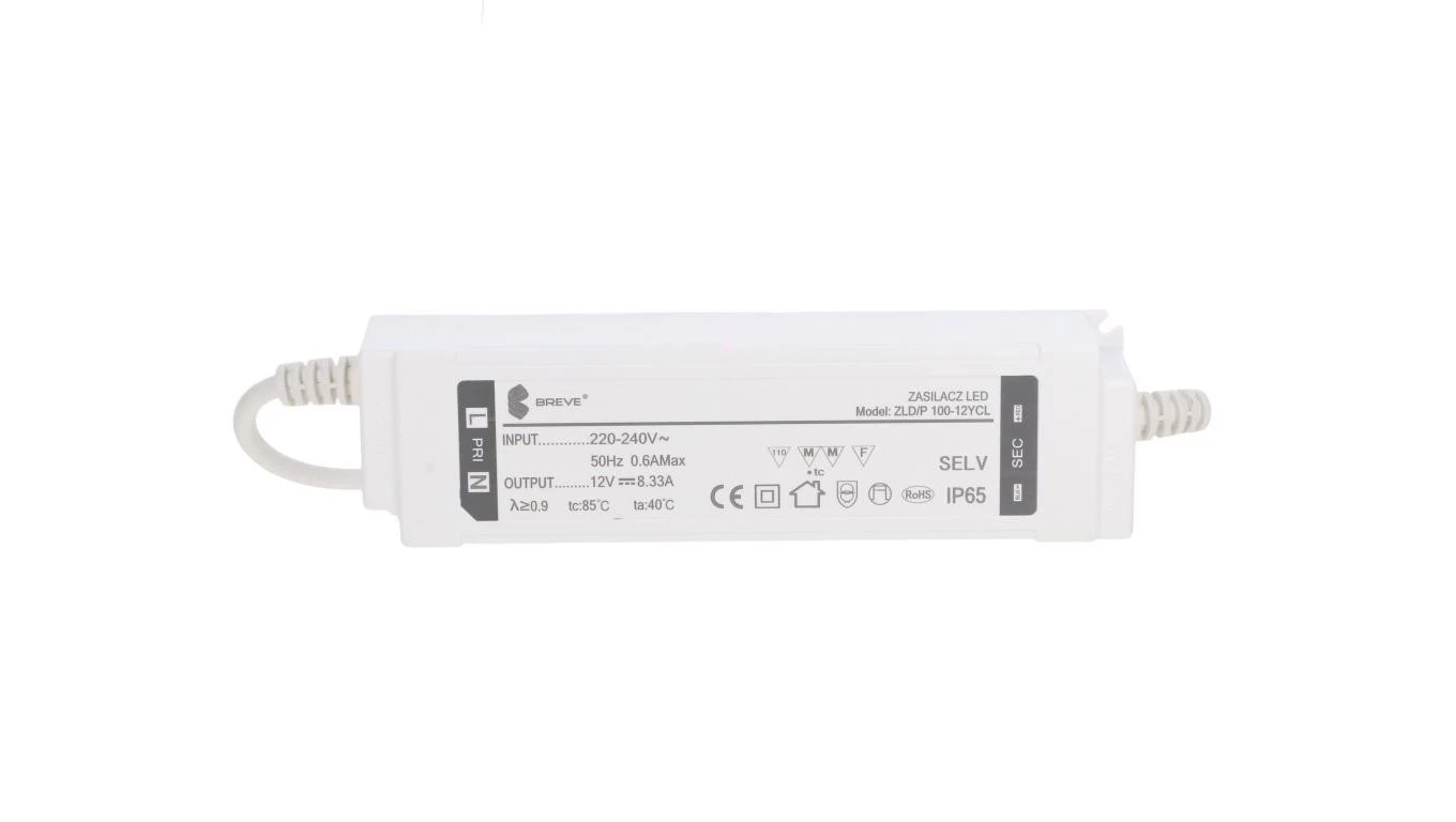 Zasilacz LED 12V DC 100W 8,33A IP65 /z zabezpieczeniami/ ZLDP 100-12YCL 19712-9040