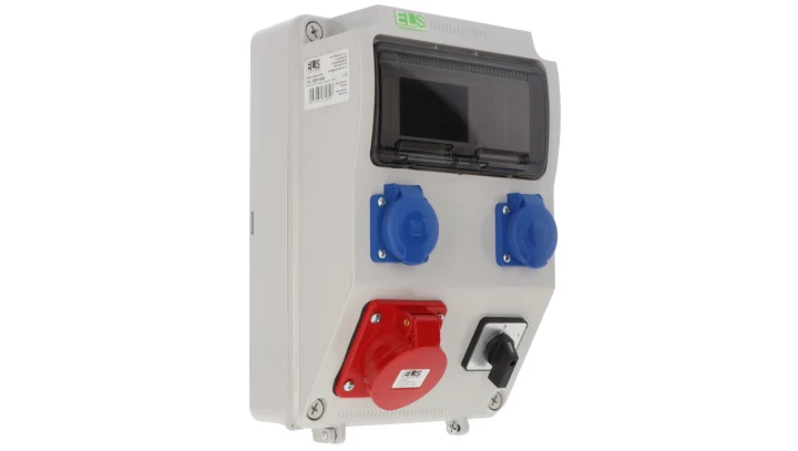 Zestaw zasilający PRYMA 9D skośna 16A/5P + 2x230V + wyłącznik 0-1 IP44 E930110520